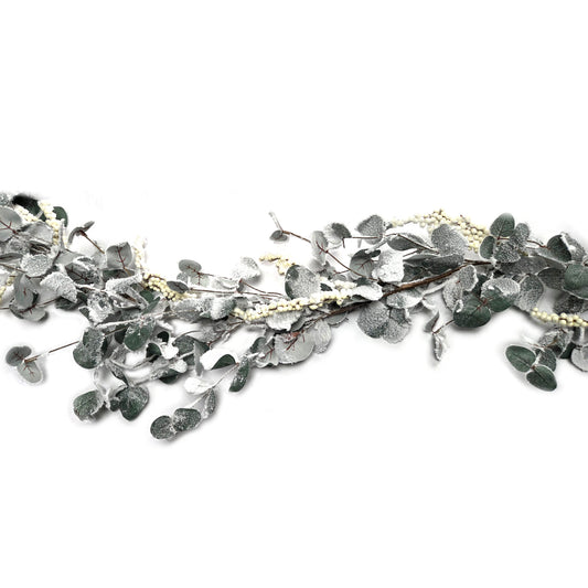 NewSnow Flocked Eucalyptus & White Berries Garland 183cm