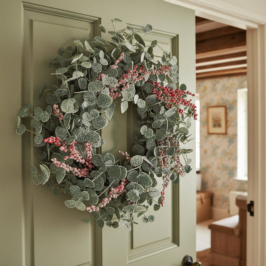 Snow Dusted Eucalyptus & Red Berry Winter Wreath 70cm